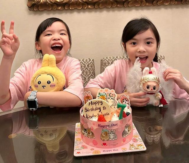 香港超模熊黛林,嫁给富豪老公郭可颂之后,就减少了工作量,在家相夫教子。最近,熊黛林给她的一对双胞胎女儿庆祝7岁生日,两个孩子的颜值引发网友热议。姐姐长得像妈妈熊黛林,是大眼睛美女,而妹妹长得像爸爸,牙齿凸,眼睛小,塌鼻梁,香肠嘴。