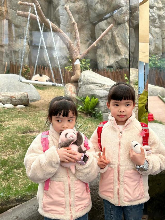 熊黛林的7岁双胞胎女儿,姐姐是大眼睛美女,妹妹香肠嘴,牙齿凸,颜值差距太大了吧。
